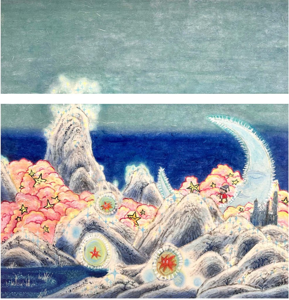 Flowers of Tomorrow, ink and acrylic on paper, 41 x 114cm, 2021Midnight Venezia, ink, acrylic and watercolour on paper, 52x109cm, 2020Venezia In Daylight, ink, acrylic and watercolour on paper, 49x97cm, 2020Strangerland, ink and color on paper, 52 x 120cm, 2019Night Voyage夜行景, ink and colour on paper, Triptych, 90×74;90×180;90×74 cm, 2019